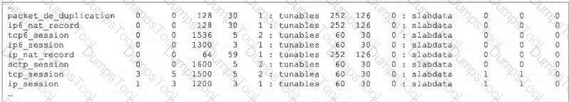 Refer to the exhibit, which shows the partial output of FortiOS kernel slabs.