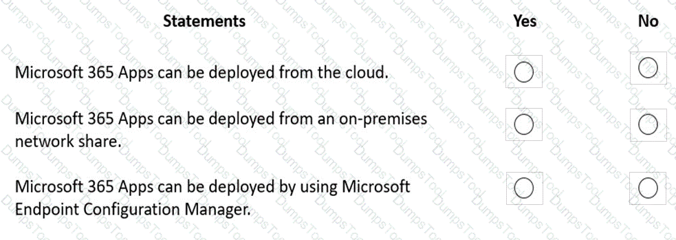 Instructions: For each of the following statements, select Yes if the statement is true. Otherwise, selectNo.