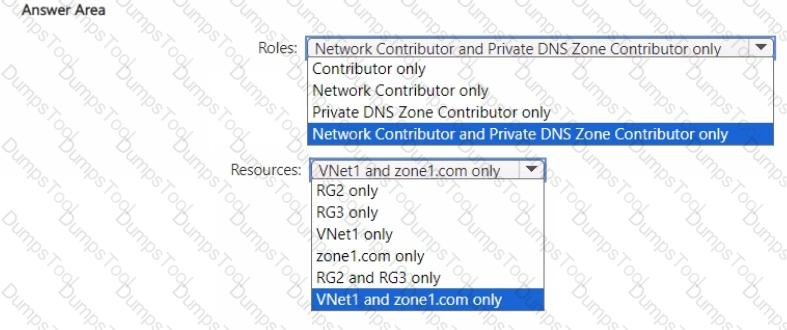 Which roles should you assign to User1, and for which resources? To answer, select the appropriate options in the answer area.