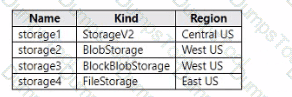 You have an Azure subscription that contains The storage accounts shown in the following table.