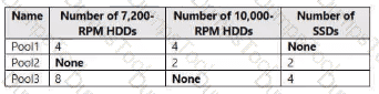 You have a server named Server1 that runs Windows Server. Server1 has the storage pools shown in the following table.