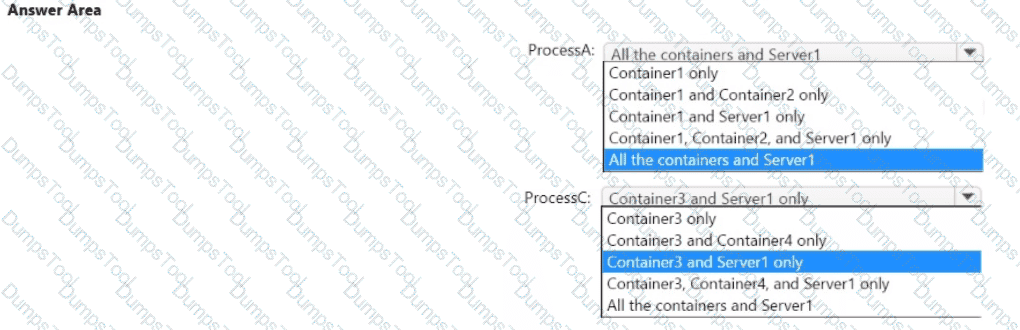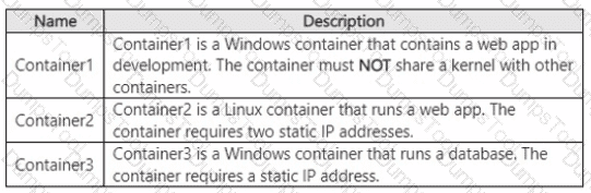 You have a Windows Server container host named Server! that has a single disk. On Server1, you plan to start the containers shown in the following table.