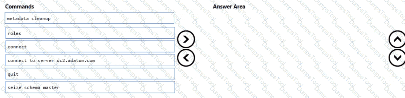 Which five commands should you run in sequence? To answer, move the appropriate commands from the list of commands to the answer area and arrange them in the correct order?