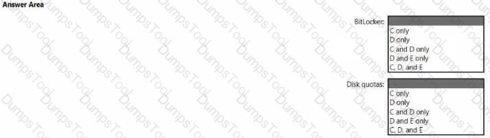 On which volumes can you use BitLocker Drive Encryption (BitLocker) and disk quotas? To answer select the appropriate options in the answer area. NOTE Each correct selection is worth one point.