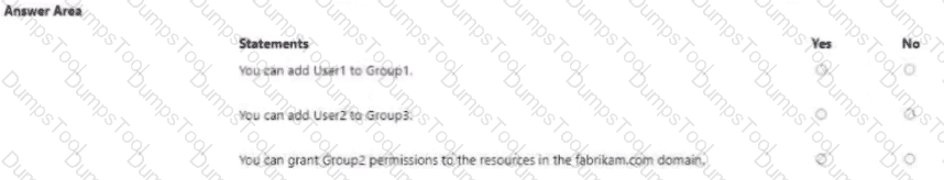 • Permissions to access the resources in fabrikam.com must only be granted directly to groups in the fabrikam.com forest.