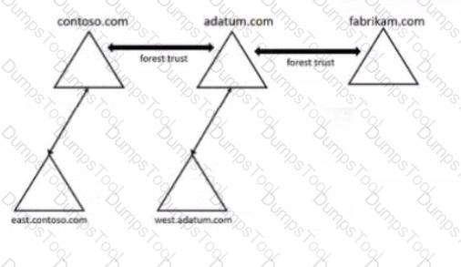 Your network contains three Active Directory Domain Services (AD DS) forest as shown in the following exhibit.