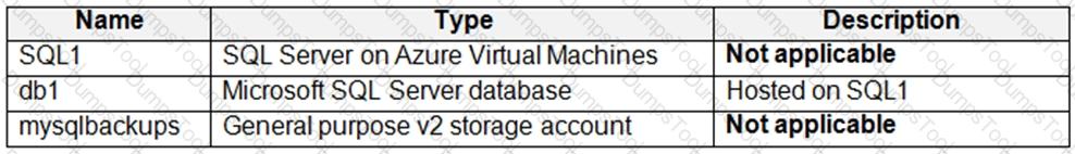 You have an Azure virtual machine named Server1 that has Microsoft SQL Server installed. Server1 contains a database named DB1.