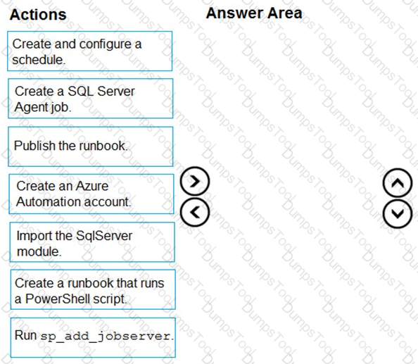 Which actions should you perform in sequence? To answer, drag the appropriate actions to the correct order. Each action may be used once, more than once, or not at all. You may need to drag the split bar between panes or scroll to view content.