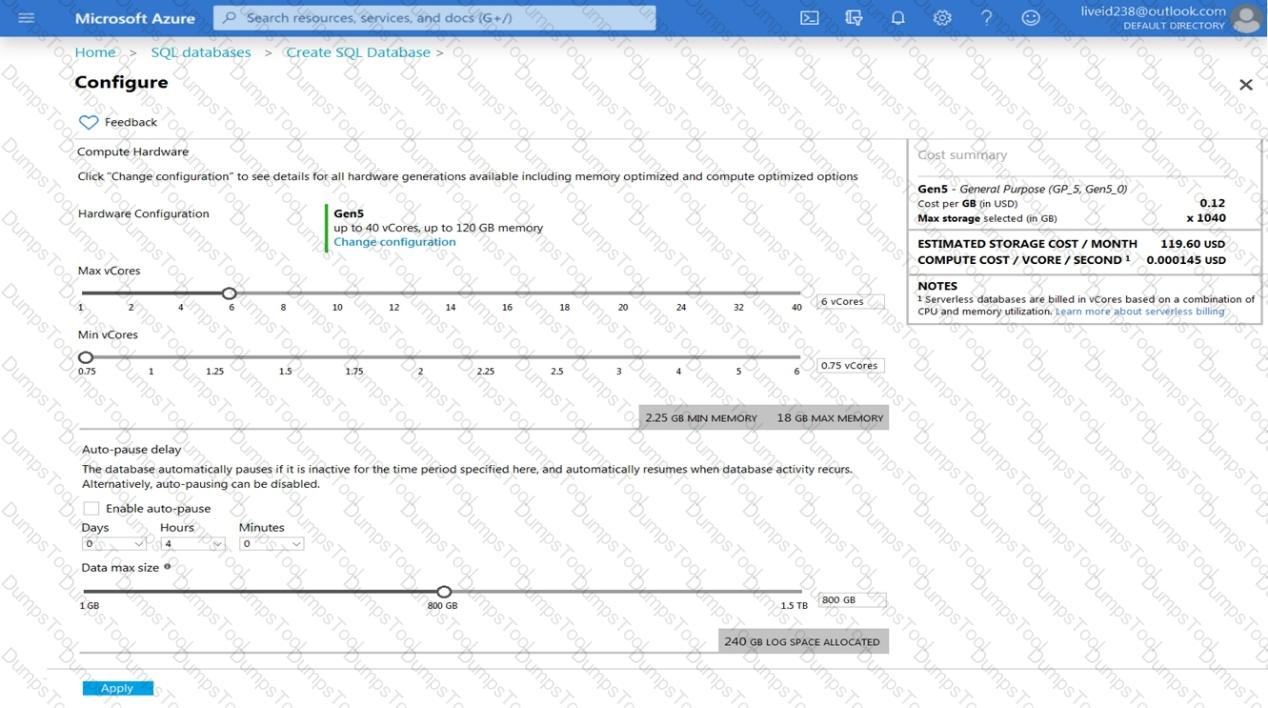 You are provisioning an Azure SQL database in the Azure portal as shown in the following exhibit.