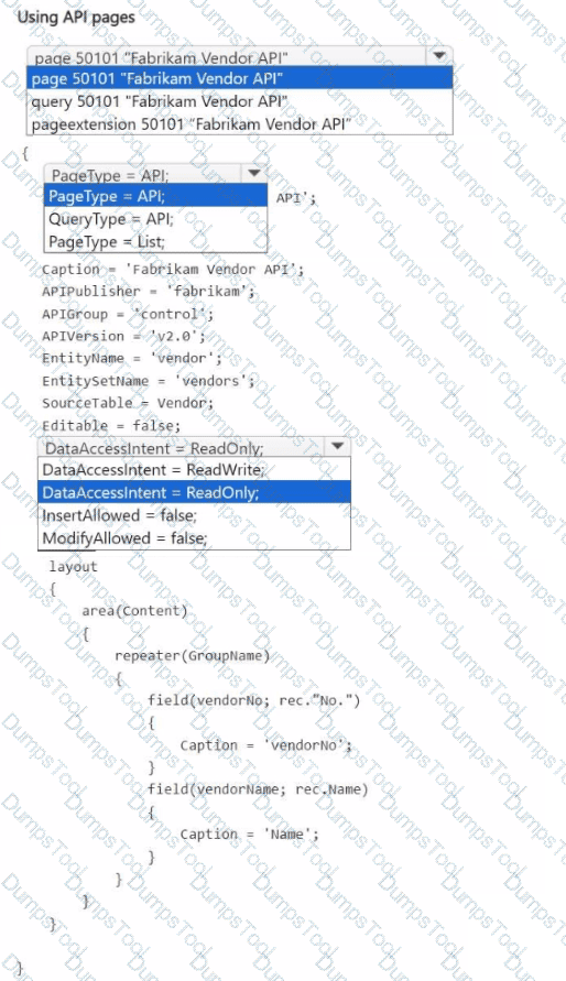 You need to create the Fabrikam Vendor API for the accounting department.