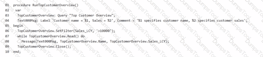 You create a query that contains a procedure to display the top customers.