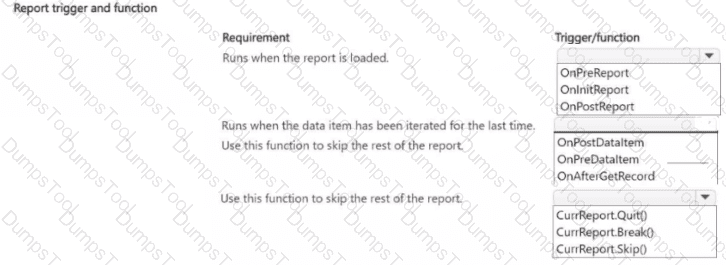 Which triggers and functions should you use? To answer, select the appropriate options in the answer area.
