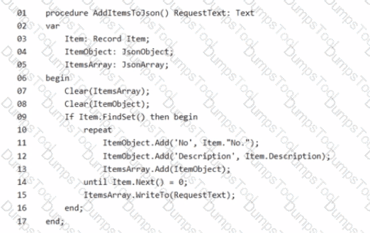 You create an 'AddltemsToJson" procedure and publish it.