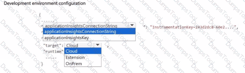 How should you complete the app.json file? To answer, select the appropriate options in the answer area.