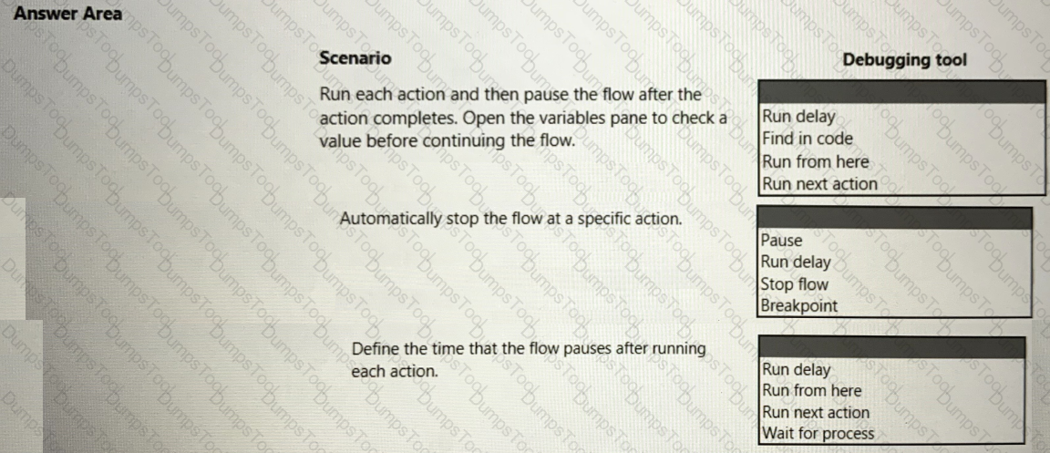 Which debugging tools should you use? To answer, select the appropriate options in the answer area.
