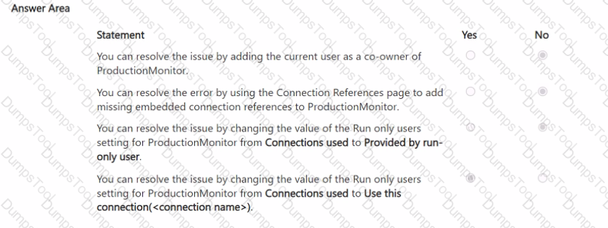 You have an automation solution that uses a desktop flow. The flow reads data from a file that is stored on a user’s machine and writes the data to an application. You import the solution to an environment that is connected to another user’s machine.