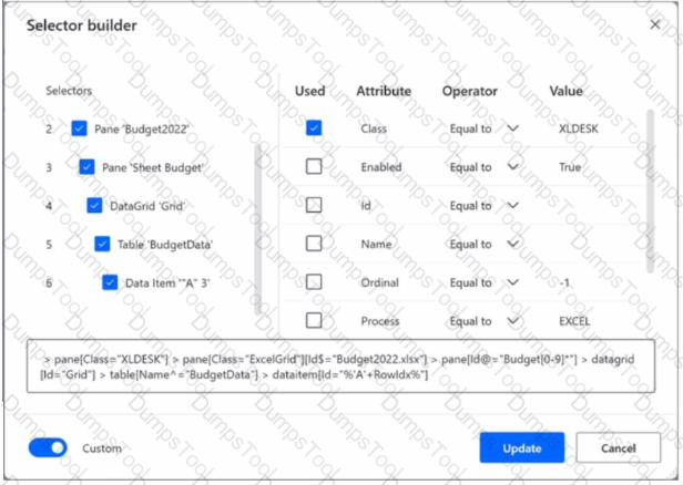 You are creating a custom selector for a Microsoft Excel workbook by using a Power Automate desktop flow.