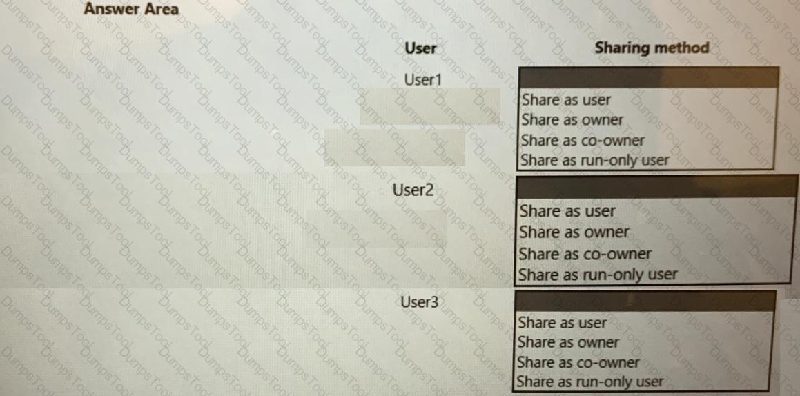 Which sharing methods should you use? To answer, select the appropriate options in the answer area.