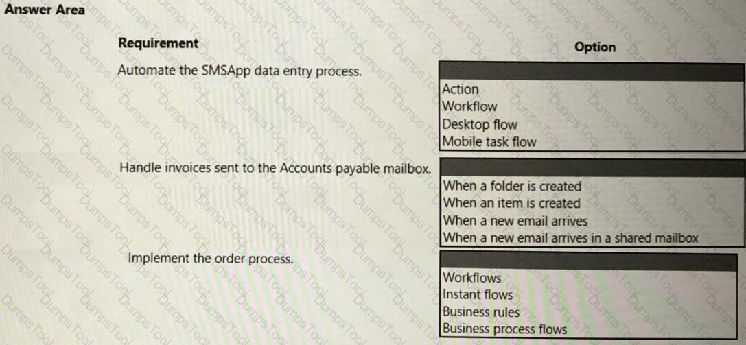 You need to configure the flow for processing invoices that arrive in the AP mailbox. Which three elements should you use? Each correct answer presents part of the solution. NOTE: Each correct selection is worth one point.