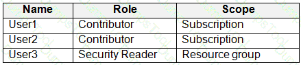 You have an Azure subscription linked to an Azure Active Directory (Azure AD) tenant. The tenant contains two users named User1 and User2.