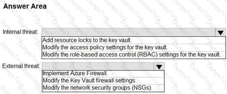 What should you recommend for each threat? To answer, select the appropriate options in the answer area.