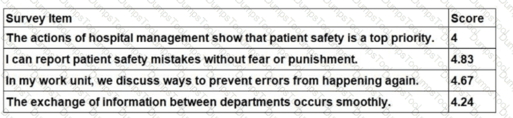 The culture of safety survey data below is collected from perioperative services. Which action should the healthcare quality professional recommend?