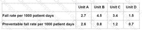 Based on the data below, which unit should the quality Improvement coordinator focus on?
