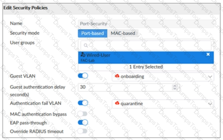 Examine the FortiSwitch security policy shown in the exhibit.