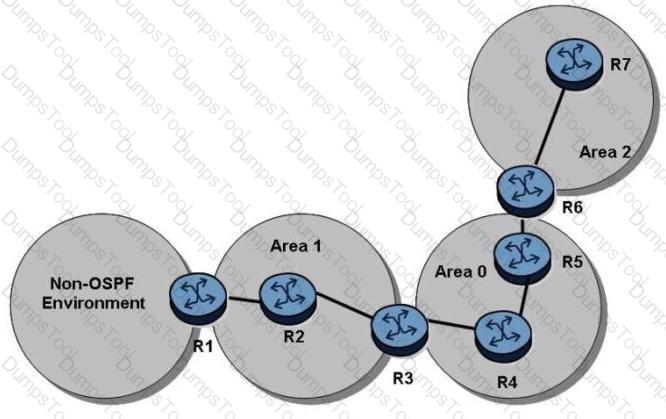 In the topology shown, router R1 is an ASBR configured to export external routes to OSPF. Assuming that there are no stub networks, which of the following statements regarding Type 4 LSA generation is true?