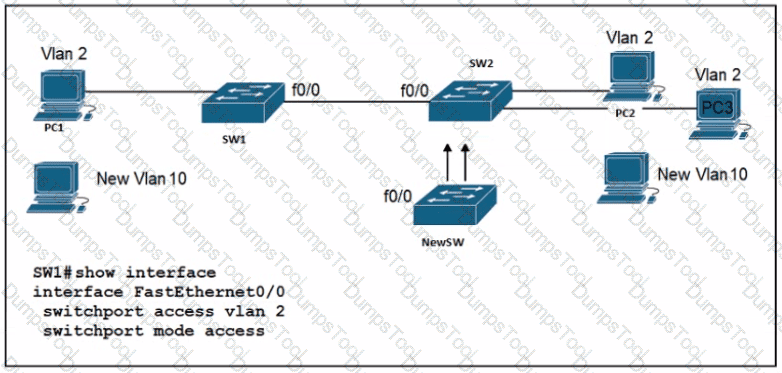 An engineer is configuring a new Cisco switch NewSW, to replace SW2 The details have been provided