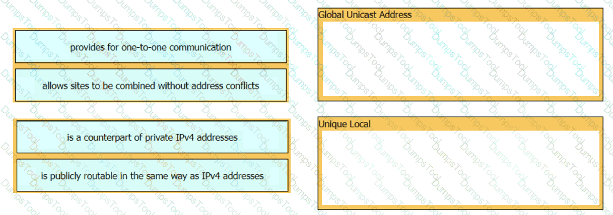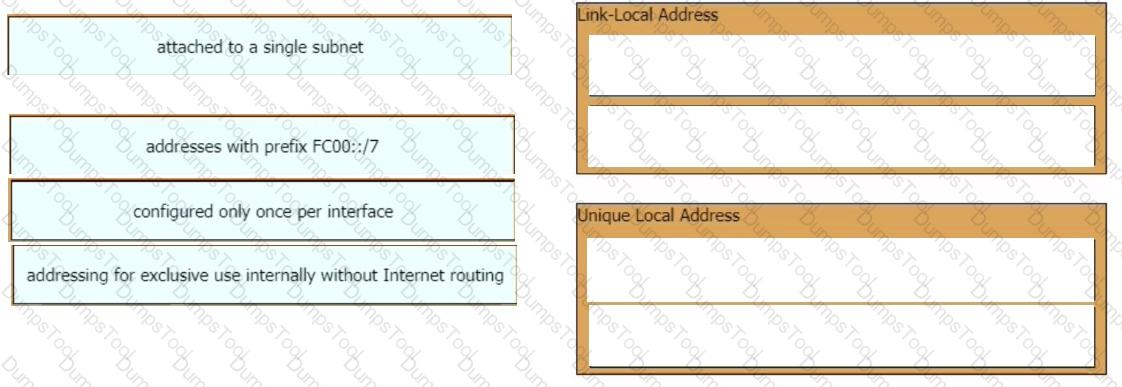 Drag and drop the IPv6 address type characteristics from the left to the right.