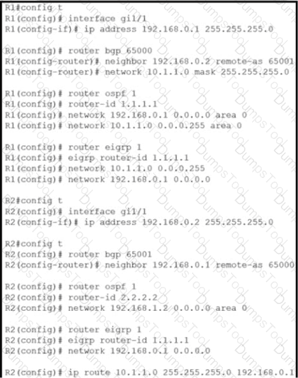 1 . Configure static routing to ensure RI prefers the path through R2 to