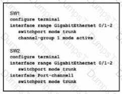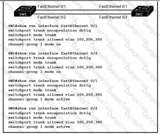 Refer to the exhibit. Which configuration enables SW2 to establish an LACP EtherChannel?