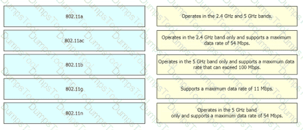 Drag and drop the 802.11 wireless standards from the left onto the matching statements on the right