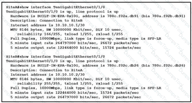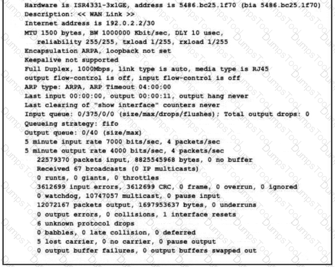 An administrator received a call from a branch office regarding poor application performance hosted at the headquarters. Ethernet 1 is connected between Router1 and the LAN switch. What identifies the issue?