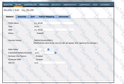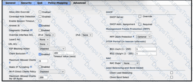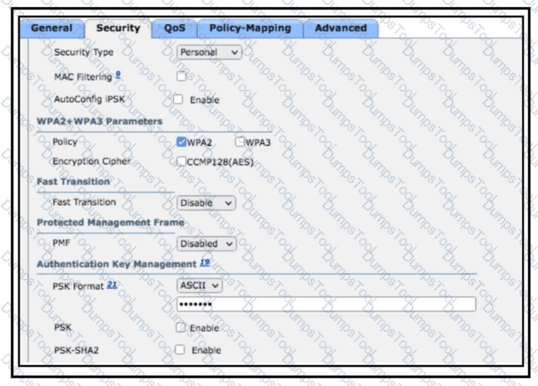 Refer to the exhibit. An administrator is configuring a new WLAN for a wireless network that has these requirements:
