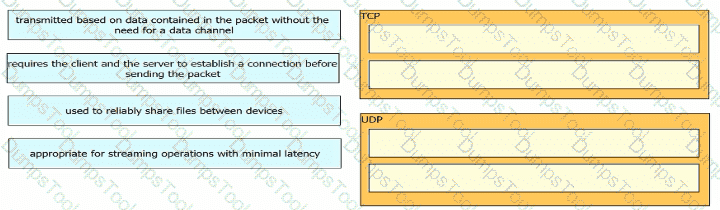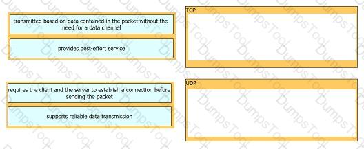 Drag and drop the statements about networking from the left onto the corresponding networking types on the right. Not all statements are used.