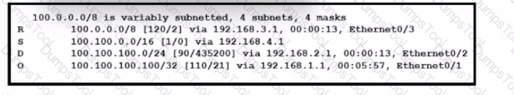 Refer to the exhibit. How will the device handle a packet destined to IP address 100.100.100.100?