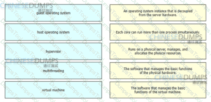 Drag and drop the virtualization concepts from the left onto the matching statements on the right.