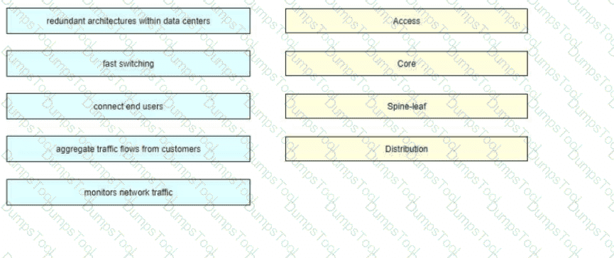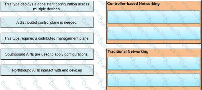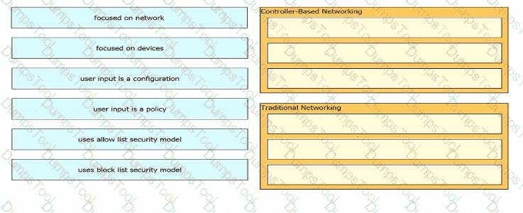 Drag and drop the characteristics of network architectures from the left onto the type of architecture on the right.