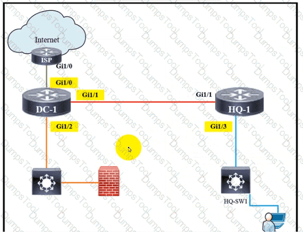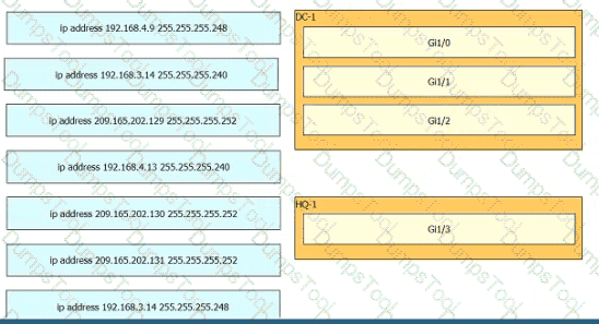 Rotor to the exhibit. The IP address configurations must be completed on the DC-1 and HQ-1 routers based on these requirements: