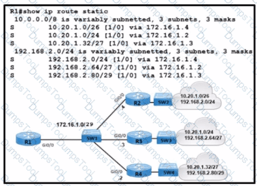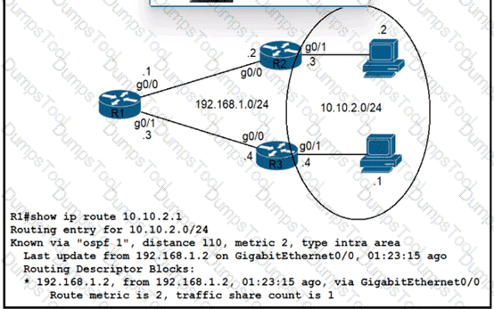Traffic from R1 to the 10.10.2.0/24 subnet uses 192.168.1.2 as its next hop. An network engineer wants to update the R1 configuration so that traffic with destination 10.10.2.1 passes through router R3, and all other traffic to the 10.10.20/24 subnet passes through r2. Which command must be used?