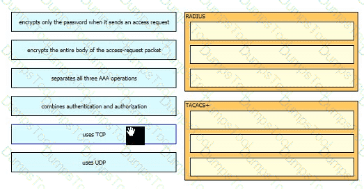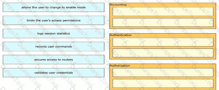 Drag and drop the AAA features from the left onto the corresponding AAA security services on the right. Not all options are used.