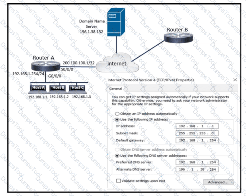 Refer to the exhibit. What is preventing host A from reaching the internet?