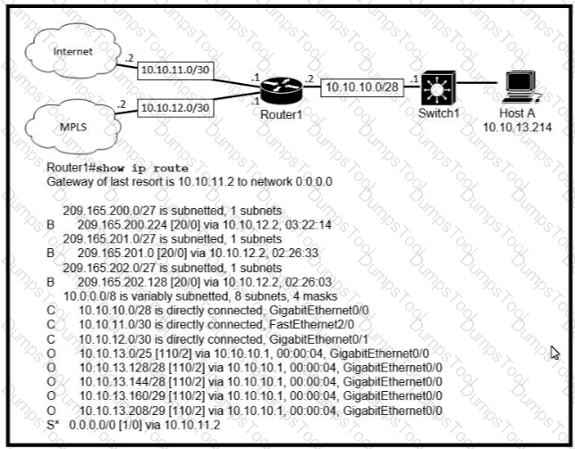 Router R1 resides in OSPF Area 0. After updating the R1 configuration to influence the paths that it will use to direct traffic, an engineer verified that each of the four Gigabit interfaces has the same route to 10.10.0.0/16. Which interface will R1 choose to send traffic to reach the route?