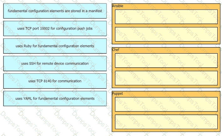 Drag drop the descriptions from the left onto the correct configuration-management technologies on the right.