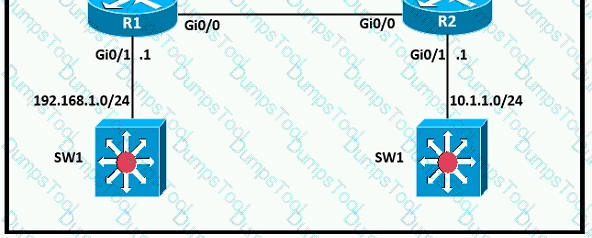 1. Configure reachability to the switch SW1 LAN subnet in router R2.
