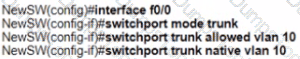 • Allow the switch to pass traffic from future VLAN 10. Which configuration must be applied?
