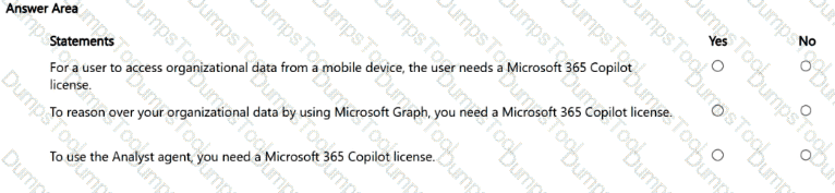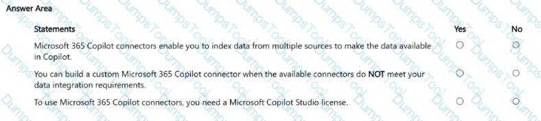 For each of the following statements, select Yes if the statement is true. Otherwise, select No. NOTE: Each correct selection is worth one point.