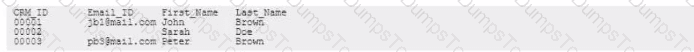 A company has two identities (CRM ID and Email ID) that can be used to define their customers in their customer relationship management (CRM) system However, not all customers have provided their Email ID. but all customers have a unique CRM ID The CRM data stored in the system takes the form: